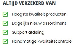 Ten slotte willen wij graag aan u meegeven dat wij open staan om feedback van u te mogen ontvangen. De feedback die wij van u ontvangen hechten wij waarde aan omdat wij namelijk uw feedback kunnen meenemen in het proces van de kwaliteitscontrole van onze producten. Dit is zowel voor u als voor ons een mooie manier van samenwerken, wat een nog beter resultaten voor ons beiden zal opleveren.